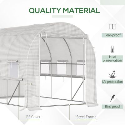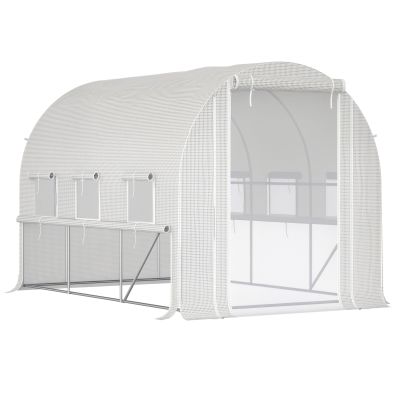 Looking to keep your shovel in the soil year-round? Go with the Greenhouse. [BRAND NAME] offers a heavy-duty Greenhouse you can place outside on your patio or backyard. The garden just got an upgrade. Nurse new seedlings or go tropical. Control heat and humidity in a mesh-protected space with six windows or clear air fast with two roll-up walls.