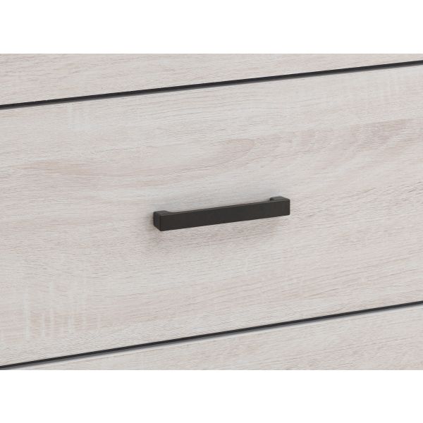 This six-drawer dresser offers a perfect balance of style and storage. Its clean-lined frame complements modern and contemporary spaces, while six spacious drawers provide ample room for clothing and accessories. Crafted from engineered wood with a durable laminate veneer, this dresser is built for everyday use. Matte dark bronze handles add a refined contrast, enhancing its sleek and functional design.