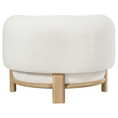 Build a refined, approachable living room aesthetic around this charming modern accent chair. It's a barrel back silhouette that impresses with strong, enduring lines that create a welcoming ambiance. Heavily textured upholstery adds neutral allure, perfect for creating contrast or offering an easy complement to surrounding furnishings. The chair features a wood frame, with exposed details in a natural oak wood finish to create a soothing, subtle finishing touch. Add a colorful accent pillow for a touch of personality.
