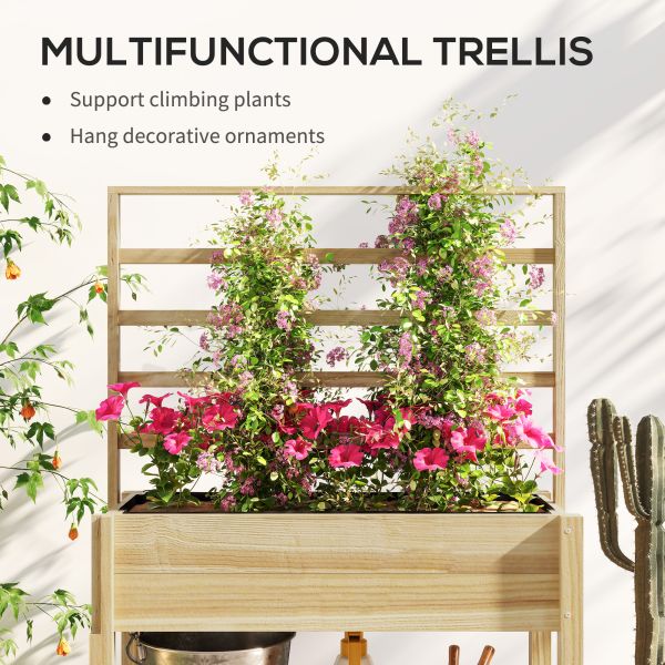 Transform your garden with the [BRAND NAME] Raised Bed! This charming planter box features a built-in trellis excellent for climbing plants and a handy lower shelf to keep your gardening tools close. Enjoy hassle-free planting with its effective drainage system and solid fir Wood frame. Great for sprucing up any outdoor space.