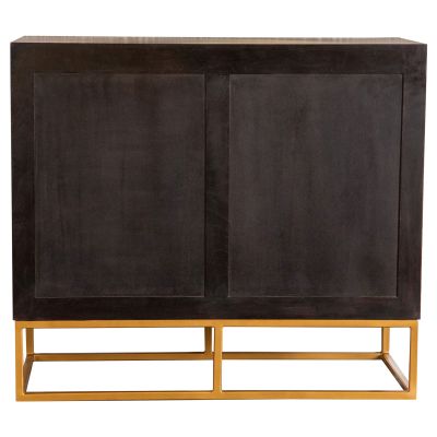 A handcrafted accent cabinet from India makes its presence known. With its mix of natural wood colors, it'll instantly captures attention in your living area. Gold hardware with a matching geometric base provides durability and aesthetic flair. Two large cabinet doors hold your valuables within. Neatly arrange your items on the single interior shelf.